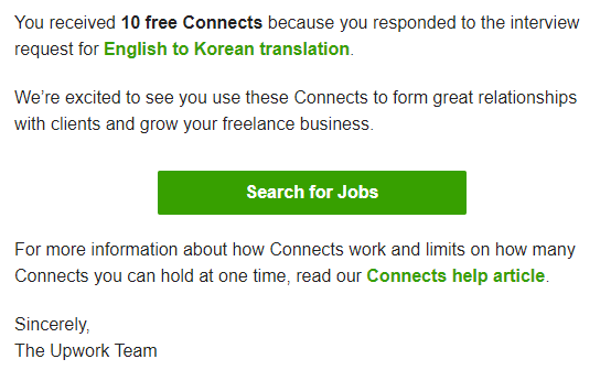 이번달부터, 인터뷰 성공시, 그러니까, 일감을 맡게 되면, 한건당 10개의 Connect를 더해 준다.