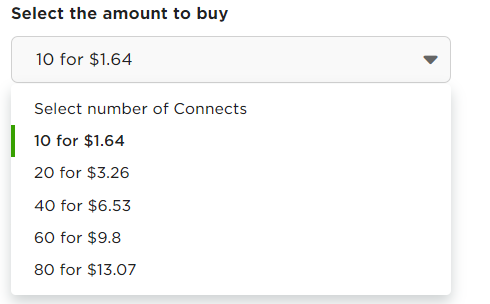 보통 금액과 프로젝트 크기에 따라 1~6개의 Connect가 소요 되는데, 만약, 나와 같은 하루살이라면, 10불의 행복을 안다면, 한달 15불 구독이 부담이 되면, 그 때, 그 때, 충전하여도 된다. 다음과 같이.