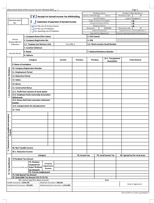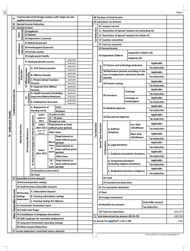 영어민 한국 거주자를 위한 영문 포맷 세금 보고서
