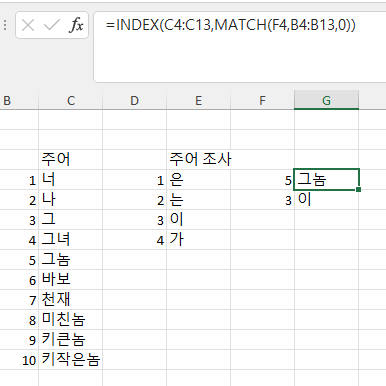 =IF(J4=6,B4:H4,"천재가 그녀를 잊었어")