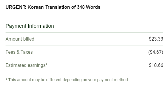 물가가 올랐다더니, 한글도 가격이 올라, 요즘 왠만하면, $0.04/단어 로 매겨지는 것 같다.